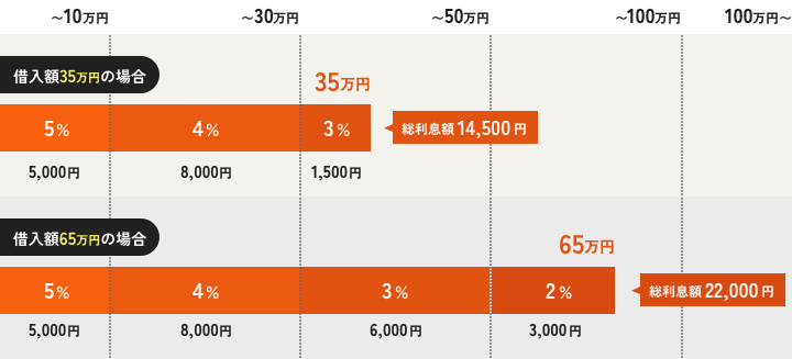 融資額が多いほど、利率は低くなります。
